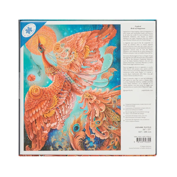 Legend has it that hanging a Bird of Happiness in one’s home will bring health and happiness. Artist Nadezhda Sokolova has taken inspiration from this classic tale of Russian folklore with this Firebird design. Using her unique style of batik painting on silk, Sokolova captures the warmth and optimism of the legend.