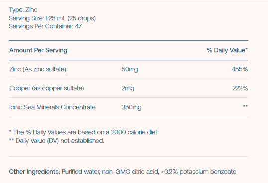 And because zinc and copper work together in the body, they balanced their liquid zinc formula with a little bit of copper for better cellular balance.